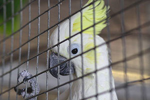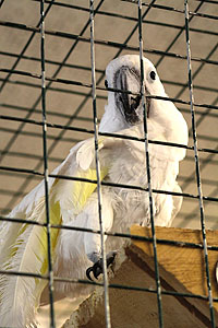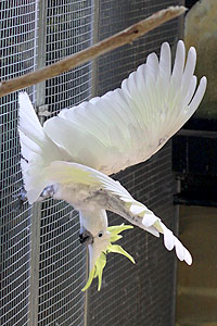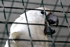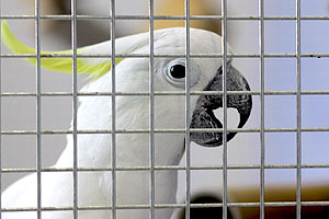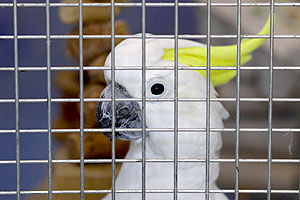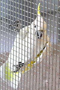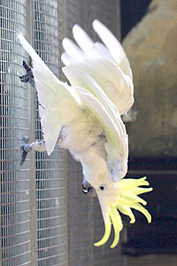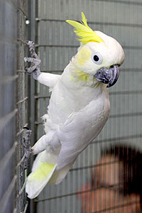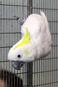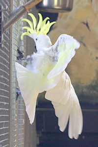 Verdi, der Gelbwangenkakadu, sucht nach der Aufregung im Trakt.