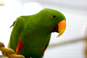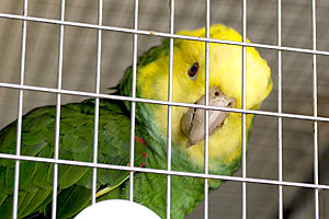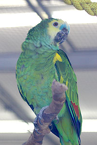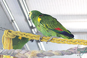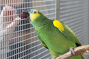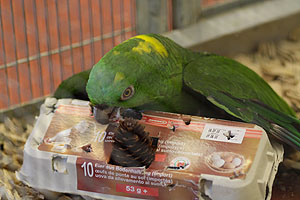 ist die Gelbnackenamazone Rico. Sie schaut was ihre Kollegin da