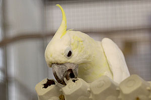 Gelbhaubenkakadu kann nicht genug bekommen. Hier beim