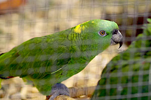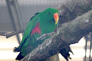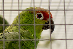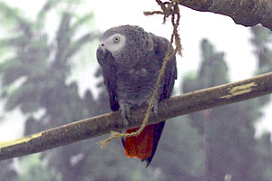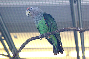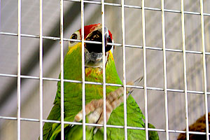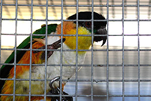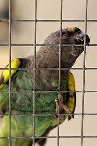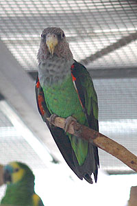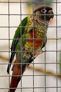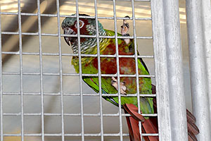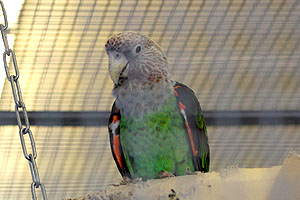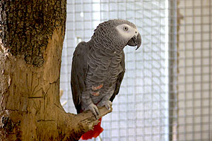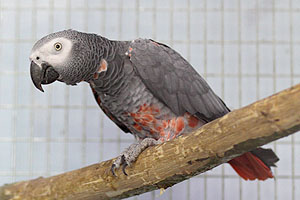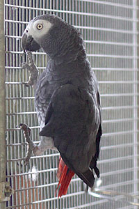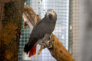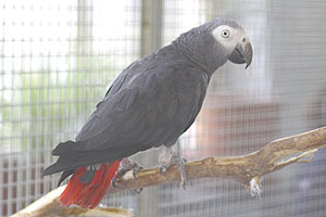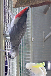 da vorne an der Voliere. Ich traue mich nicht ran. Graupapagei