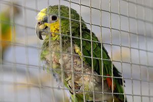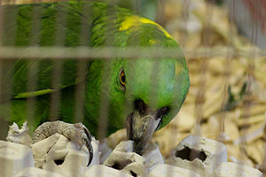 Volierenboden. Doppelgelbkopfamazone Benita schaut entsetzt runter...