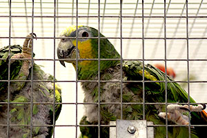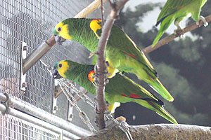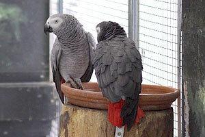 Tschättere, Blaustirnamazone Crash und Graukopfpapageiendame Java.