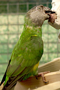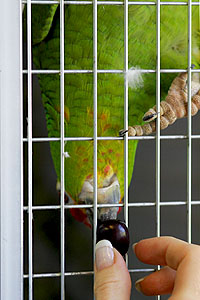 frisst die Blaustirnamazone Paco auch vertrauensvoll aus der Hand.