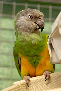 Cheery, der Mohrenkopfpapagei freut sich über mein