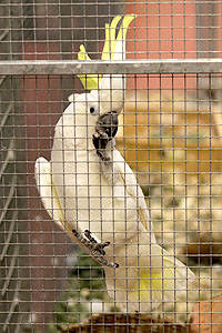 (Gelbwangenkakadu) zu verstehen. Leo räumt rasch das Feld.