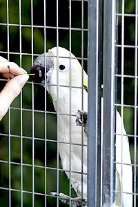 als ob Leo (Gelbwangenkakadu) es sich gut schmecken lässt. Alle
