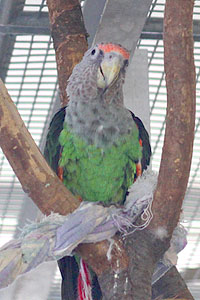 Assam, unser einbeiniger Pflaumenkopfsittich. Er ist schon vor