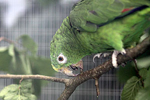 Gelbnackenamazone Rico stürzt sich wie eine Furie auf den mit