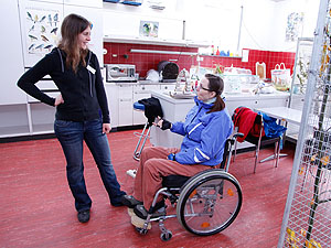 Mit meinem Rollstuhl wird es immer eng in den Gängen.