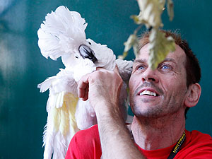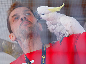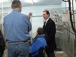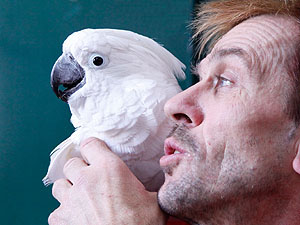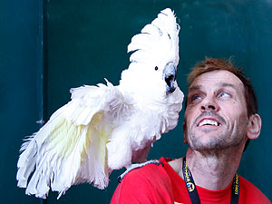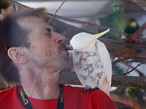Papageienfreunde, gibt Interviews für die Medien und gibt auch Vorträge.