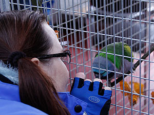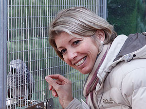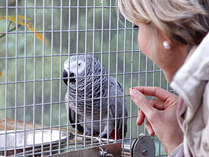 Präsidentin Christine Zehnder mit ihrem Schützling Graupapagei