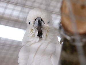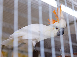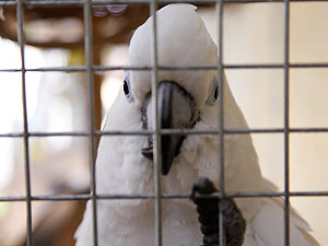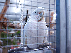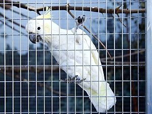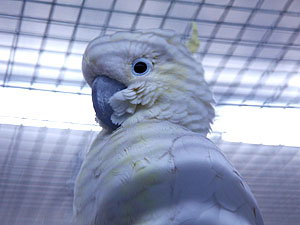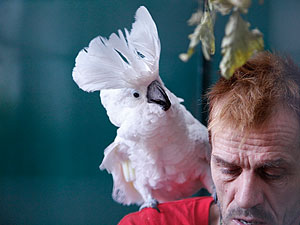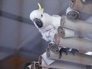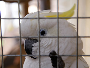 Gelbhaubenkakadu, nimmt sie sofort in Beschlag.
