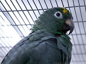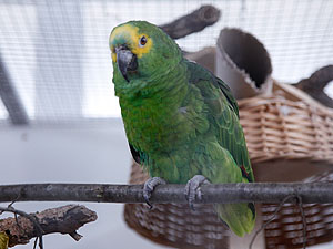 Die kleine Weisstirnamazone Cancun teilt sich mit Daisy, dem