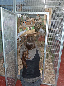 Voliere zu Voliere und Cathrin montierte die Kräcker an nicht