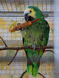 Blaustirnamazone, den Kräcker abzuknipsen. Das Aushängen haben