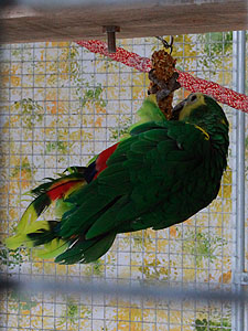 baumelt Blaustirnamazone Rico am Kräcker. Wir haben sehr viele