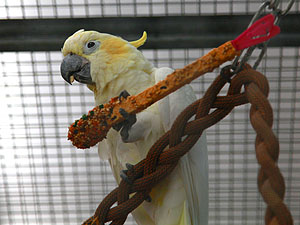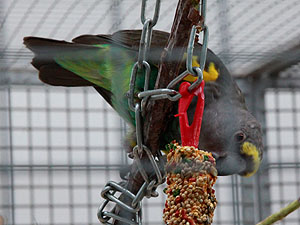 auch in dieser Voliere einen Kräcker aufs Dach katapultiert.