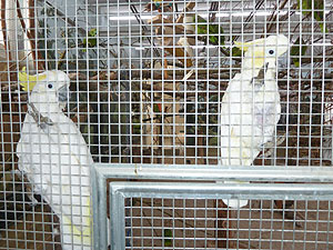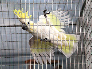 Tschättere, ein grosser Gelbhaubenkakadu und Leo, ein