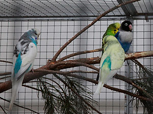 mit vielen Sittichen drin. Hier wohnen die Kleinsten von uns.