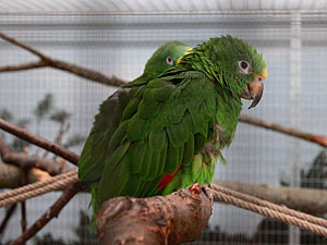Die beiden Gelbstirnamazonen Lora und Laura. Laura unterhält ganz