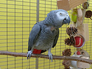 Graupapageiweibchen wartet auf einen passenden Partner.