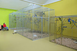 Hochzeitssuiten. Zwei Volieren sind riesig. Ara-Mindestgrösse.