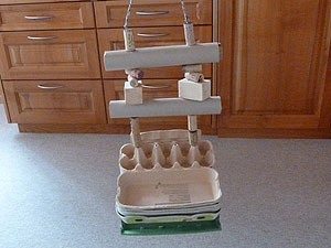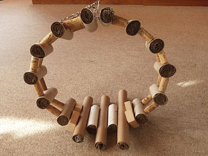 Baumzapfen, biegsamen Wellkarton, Eierkartons, Holzklötzchen oder Rädchen
