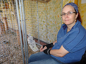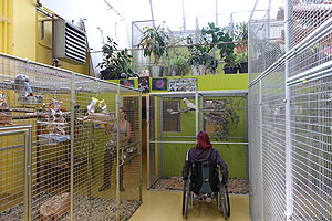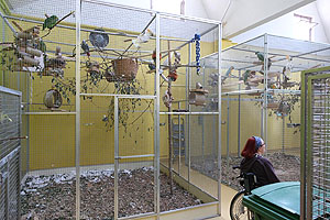 täglich Spielzeuge und richtet die Volieren neu ein.