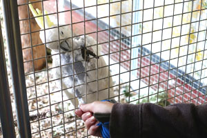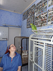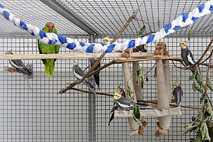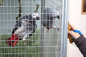 Papageien freuen sich, wenn Fritz in die Voliere kommt und diese