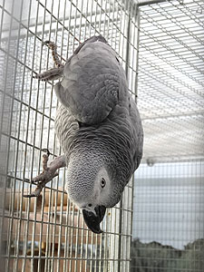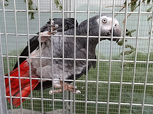Die Insassen sind 4 Graupapageien, welche in die Ferien gekommen
