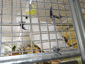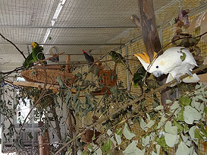 "Flug" (Voliere) sitzen noch ganz viele Papageien. Sie