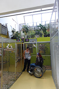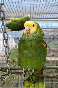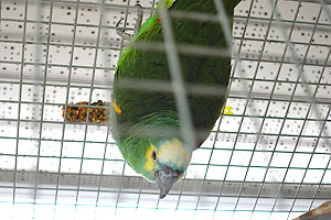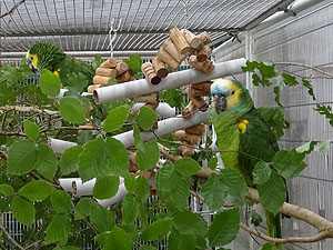 Zwischengang zur Station 2. Die Gelbstirnamazone Mickey hat Ausgang.