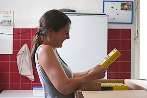 trotzdem lebensfroh. Sie bekommt Körnli aus der Verpackung vom