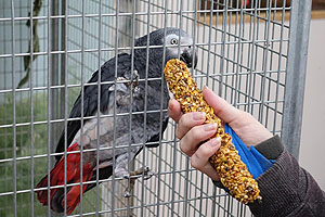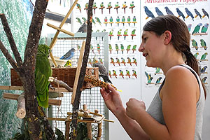 ihr Futter erarbeiten. Das hält die Papageien fit.