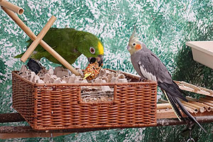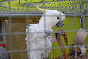 sind. Lörli, der eigentliche Besitzer (Gelbhaubenkakadu) musste