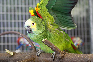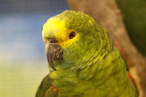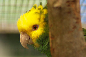 jeder Voliere sitzen schöne Amazonen aller Arten. Hier eine Gelbkopfamazone