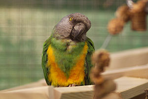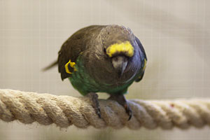 Mohrenkopfpapagei auf einem der vielen selbstgebastelten