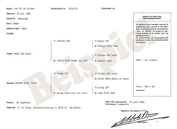 bedeutet das 188igste Friesenfohlen aus dem Jahr 1986.