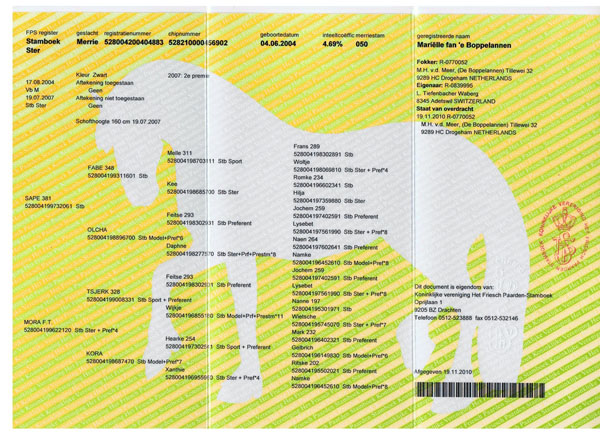 Stammbuchhengst mit Zungennummer (25F78)-Bekanntgabe.