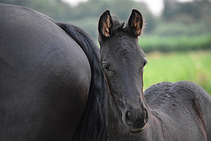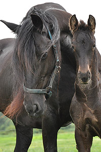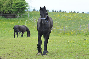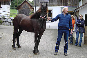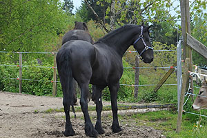 Haflinger von Nahem ansehen wollte. Sie hat ihn beschnuppert und ist in die Weide zurück gekehrt. Lillifee ist in Friesland aufgewachsen und hat noch nie ein anderes Pferd als Friesen gesehen. Andere Dinge kann ich ihr einmal zeigen und sie kapiert es. Ruhig stehen bleiben etc. ist kein Problem. Sie ist nach wie vor tiefschwarz und äusserst aufmerksam.