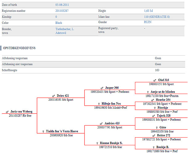 Joris van Waberg hat eine super Schrittnote mit 109! Stamm 110, 8. Generation.