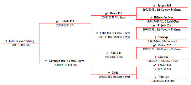 6 Fohlen zur Welt gebracht. Lilliefee hat noch eine Vollschwester Pandora van Waberg, Bruder Ypeus fan 'e Vesta Hoeve ist Vb Ster.