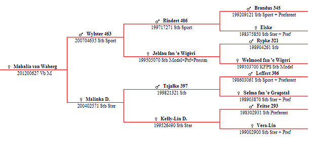 Die Mutter ist Malinka D. Stb Ster (Stamm 155 - Tsjalke 397 x Feitse 293 Pref).
